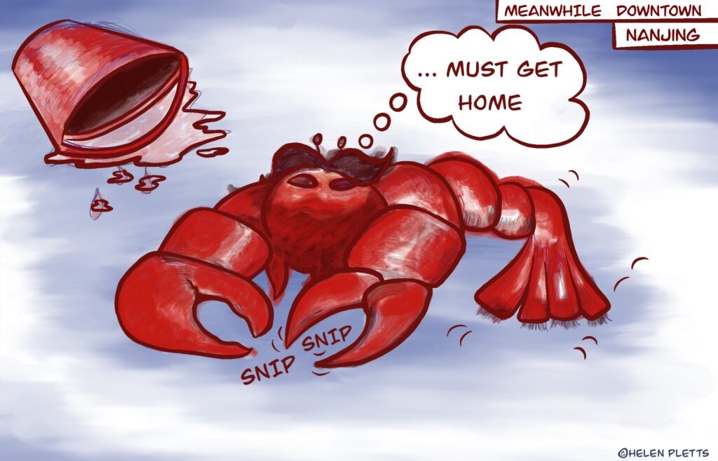 the poet re-imagined as a Nanjing red lobster—for Yongbo—for fun