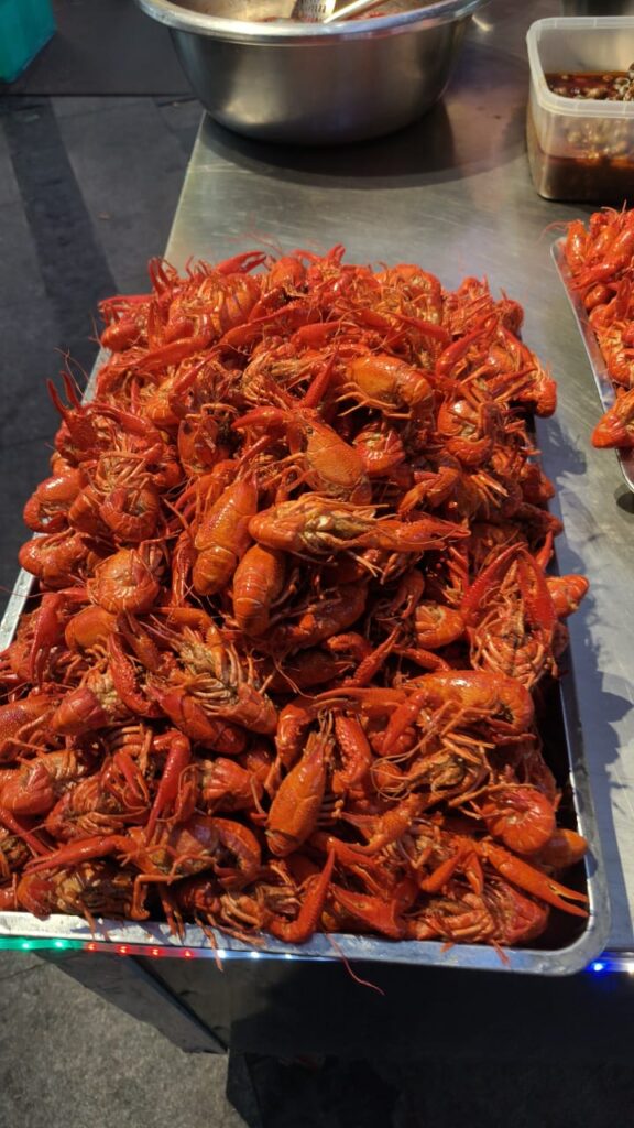 Red lobsters for sale in a Nanjing marketplace, this is a delicacy
