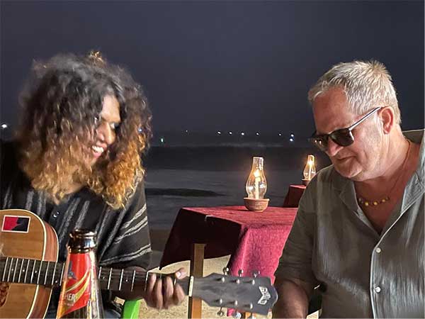 AJ had brought along his acoustic guitar and as we watched the powerful waves of the Arabian Sea pound the sands of the beach and couples dared to run into the sea, AJ went through a songbook that included Bob Marley, Paul Simon, The Clash… Guns and Roses… etc.