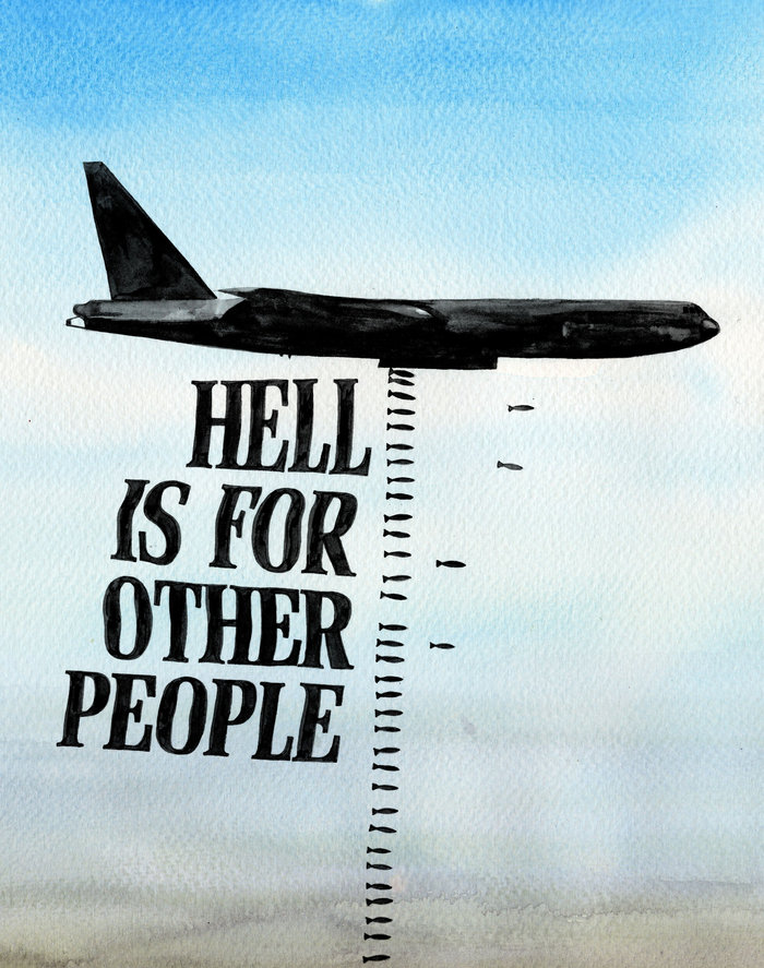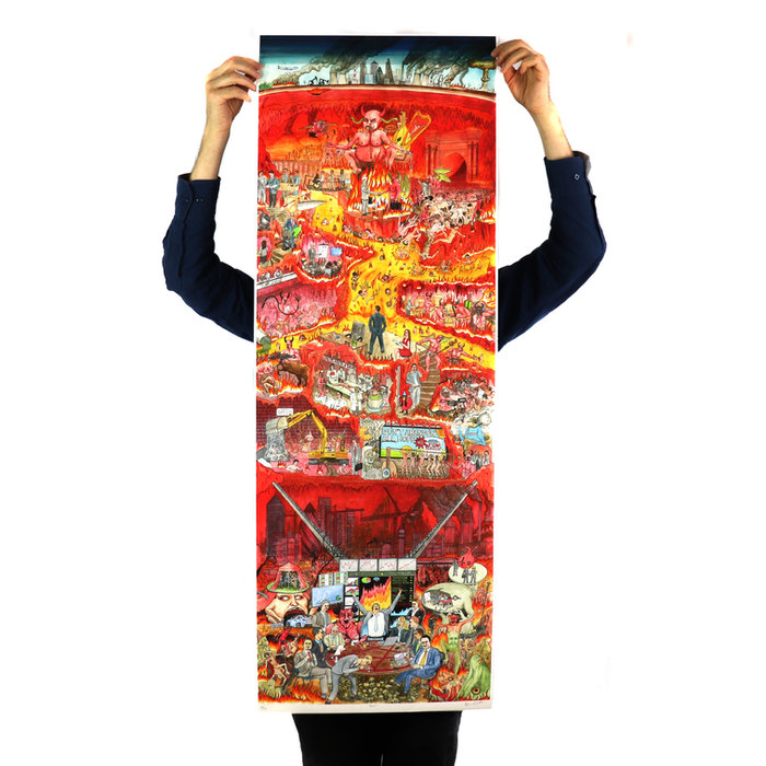I also have this quite large Hell™ print, (edition of 120) that shows business people being sent to hell where they industrialise the torture process and start running the place for profit.