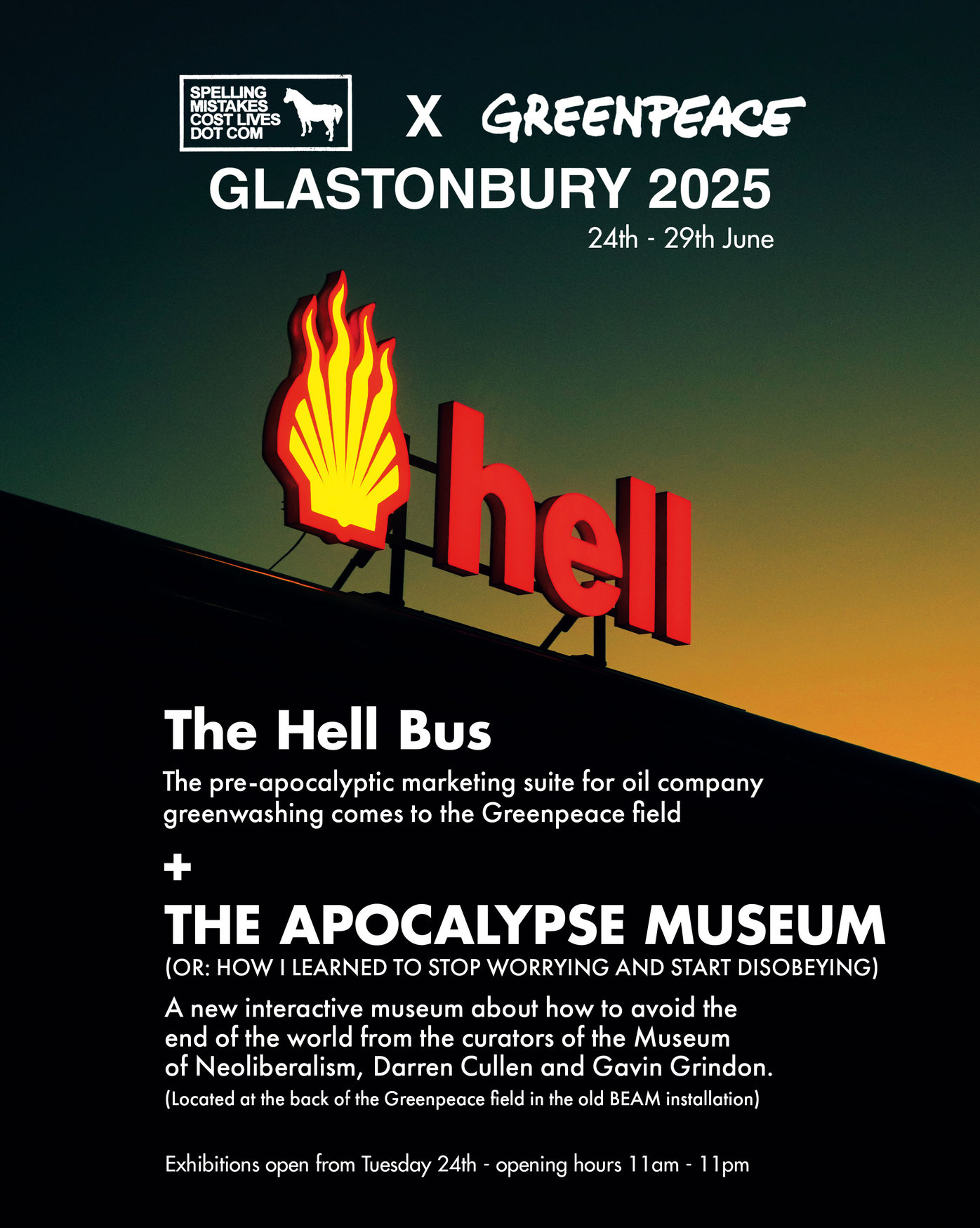 The Hell Bus is coming back to Glastonbury, but moving to Greenpeace field and with some extra new work I’ll be building over the next few weeks.