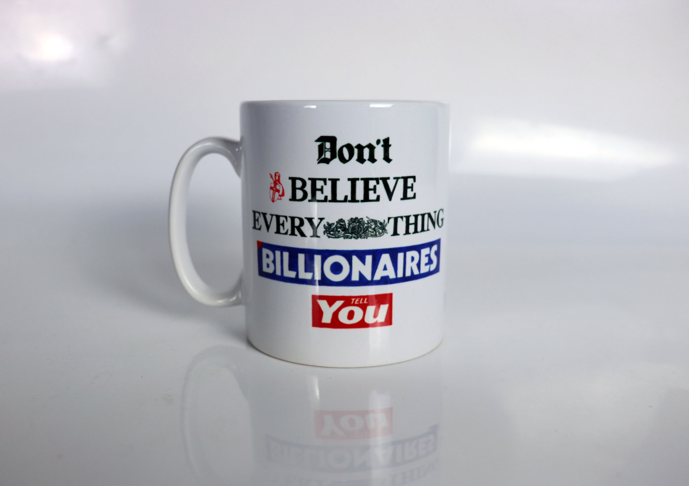 I just had some new mugs made up featuring my Don’t Believe Everything Billionaires Tell You design. They’re £10 from my website shop.