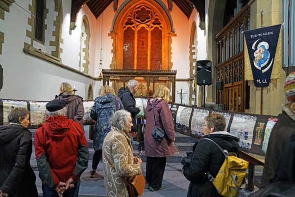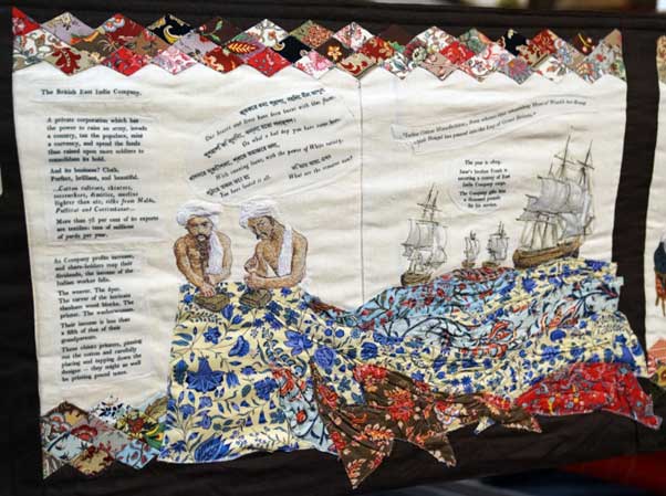 And on display was Kate’s thread-painted mural patchwork featuring many scenes from the book, echoing Jane Austen’s quilt creations. An epic show. And totally appropriate for the town of Todmorden which lies on the Lancashire/Yorkshire boundary, linked together by the history of textiles, cotton mills and the ghosts of the slave trade and child labour.