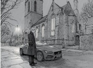 He’d expected to find an apologetic caretaker at the back of the church. But no-one came in and when he looked outside, the car park was empty. He looked back round the church one last time then flicked off the bank of switches to turn out the lights and left, closing the door firmly behind him.