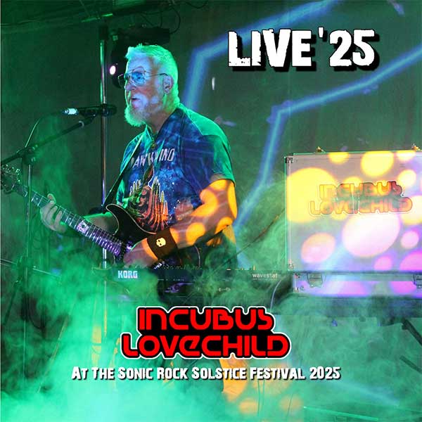 It’s hard to talk about Incubus Lovechild without mentioning Hawkwind at least once, so I’ll get it over with. The association between the two runs deeper than front man Mark Sid Edwards’ penchant for Hawkwind t-shirts: IL bass player Niall Hone played for Hawkwind right into the 2020s. And as soon as I put on the first track of their latest album, Live ’25, I was transported back to 1981 and being woken up in my tent at Glastonbury by Hawkwind playing on the Pyramid Stage. Swirling synths, driving riffs over which anything could happen, tolling electronic bells.