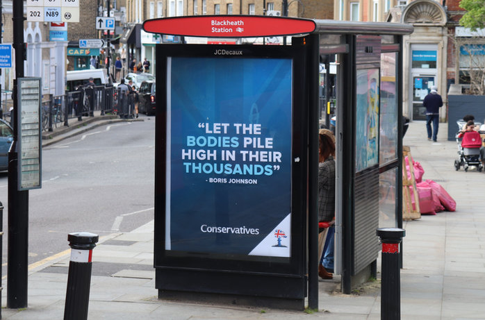 This is an old poster I put up a while back. 180,000 dead because the british media thought a posh bin bag of a man, a habitual incompetent fraud was preferable to some mild social democracy, funding the health service, and pumping the brakes on the neoliberal sell-off of the country.
