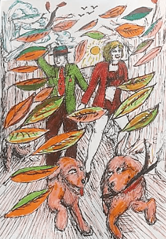 A flurry of Autumn leaves greet Sam, Sabrina, Staffy and Sue,