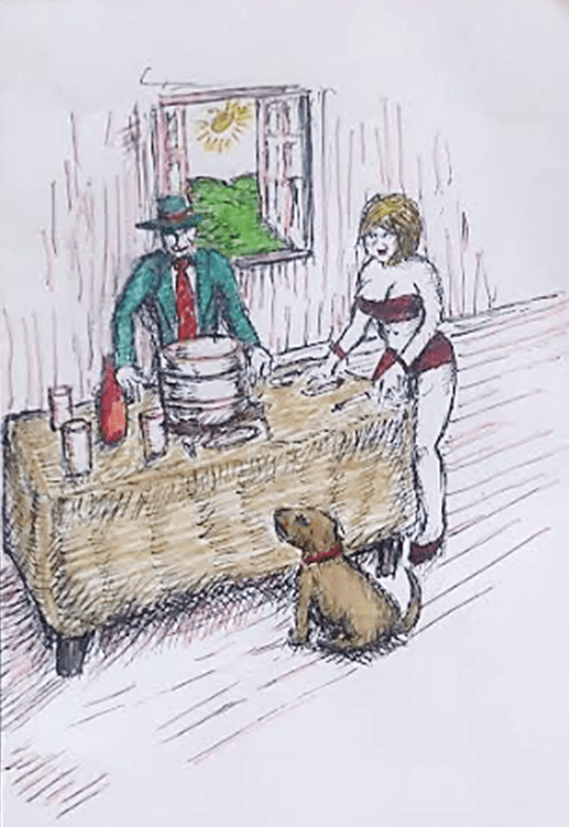 Sabrina says, “lay a place at the table for Staffy, Sam.