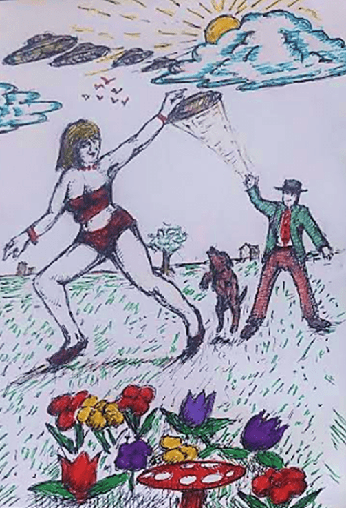 Meanwhile, flying saucers zoom by overhead! Dd 73