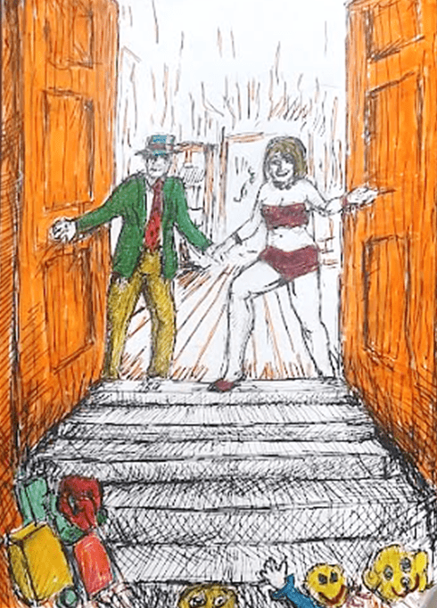 Sam and Sabrina enter their greenhouse of exotic foliage,