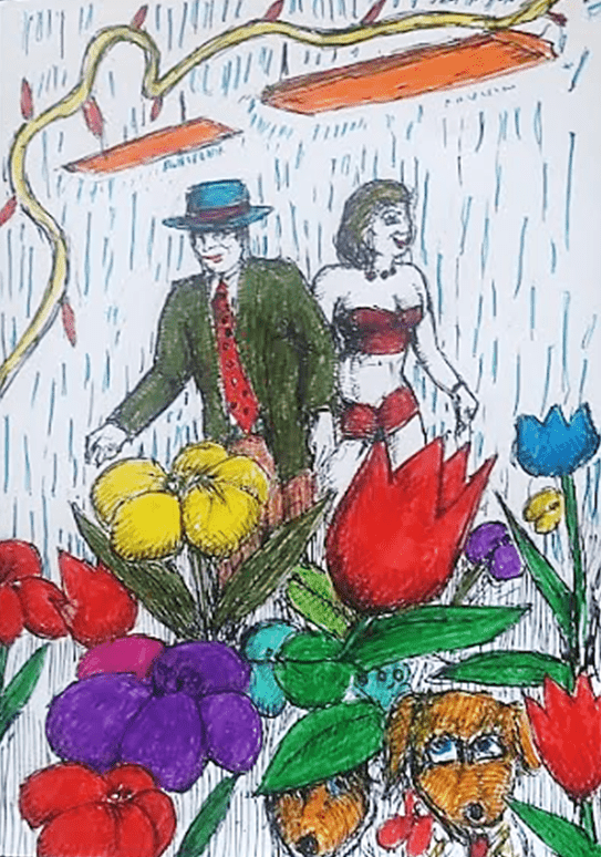 where Staffy and Sue are hiding beneath large green leaves! Dd 75