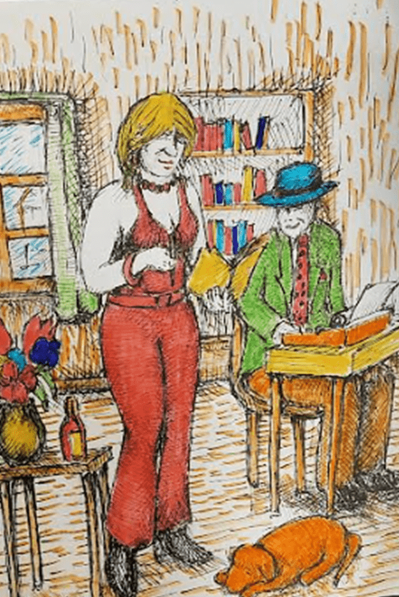 Music, Poetry, Stories. Photo: Godfrey & Léonie reciting a Dunking Doodles story in Hampstead,