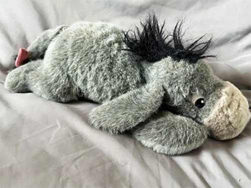 And we found him hiding in Eeyore’s leg