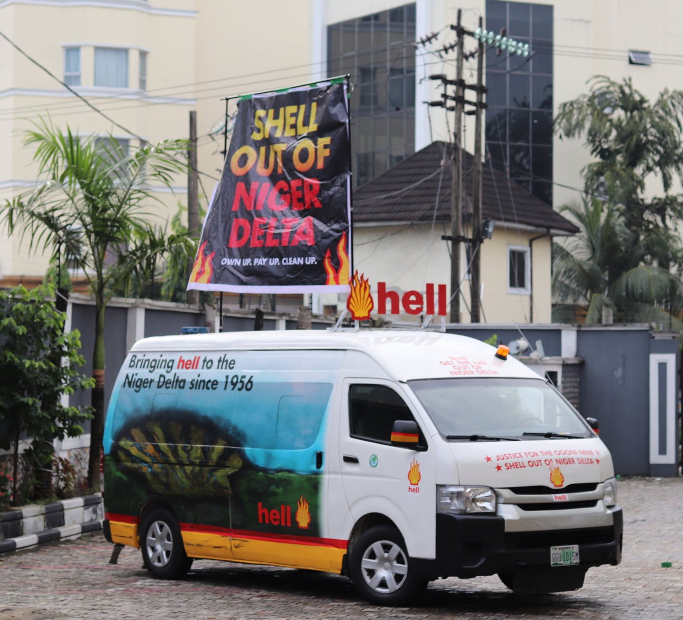 Amnesty were able to cover my flights & accommodation so I can film the documentary, but I haven’t been able to get funding for any other activities, such as putting up billboard posters (+ similar mischief), fixing up the Niger Delta Hell Bus (above) and printing/giving away more Hell t-shirts to local activists.