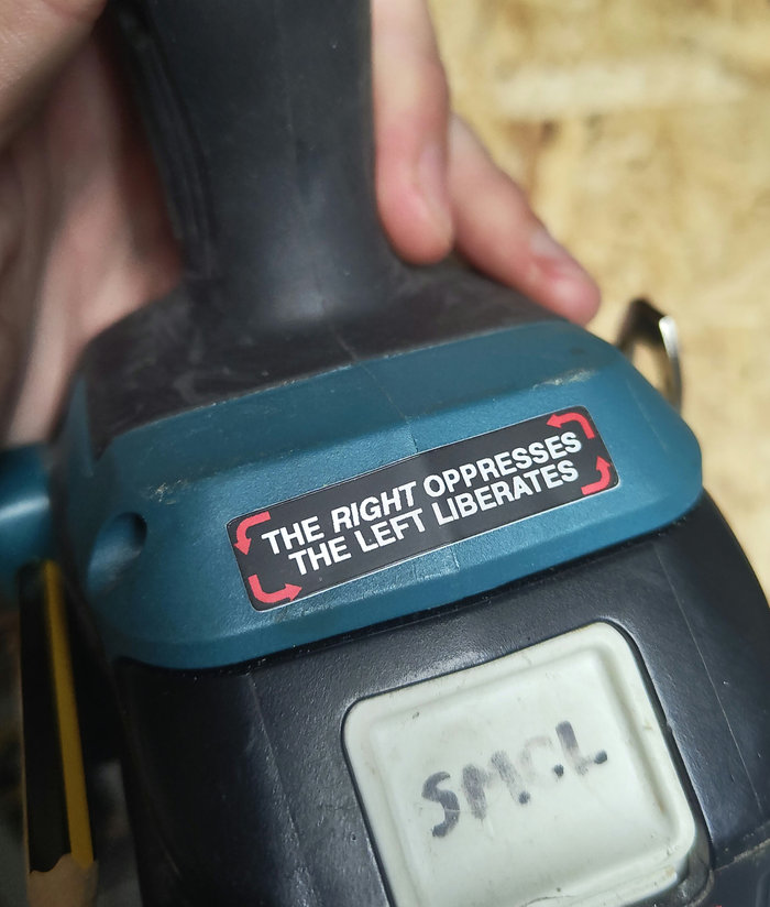 Got some stickers printed for my drills, drivers, cameras, drum kit, (basically anything with a screw), translated from the Spanish version of “righty tighty, lefty loosey”