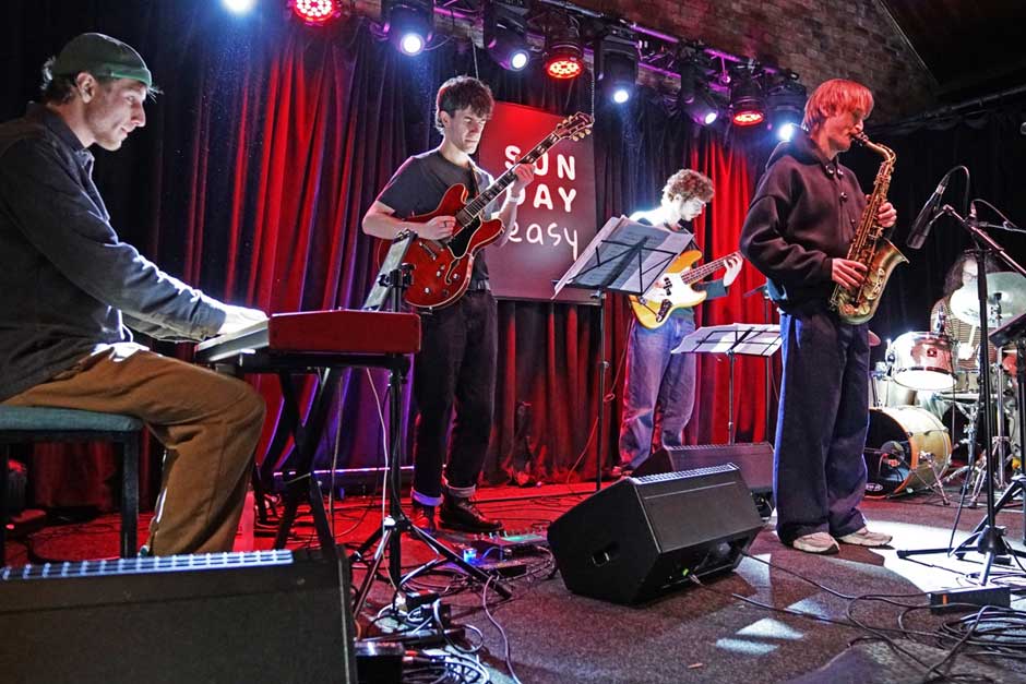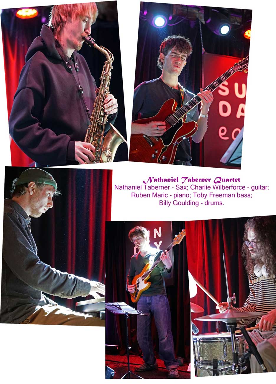 About every three months it is time for another blast of Modern Jazz at Sunday Easy in the Trades Club, Hebden Bridge. Featured live artists for this session were the Nathaniel Taberner Quintet. Mellow, elegant musical vibes with incendiary ‘break-out’ moments, bristling with tensions, and a nice mix of ensemble playing and solo opportunities.