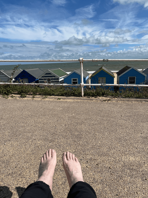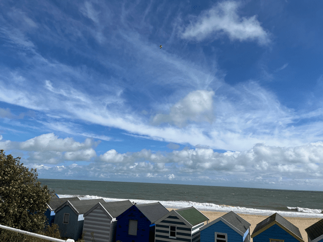 8th September 2024 midday, on a windy bench in Southwold, overlooking the sea.