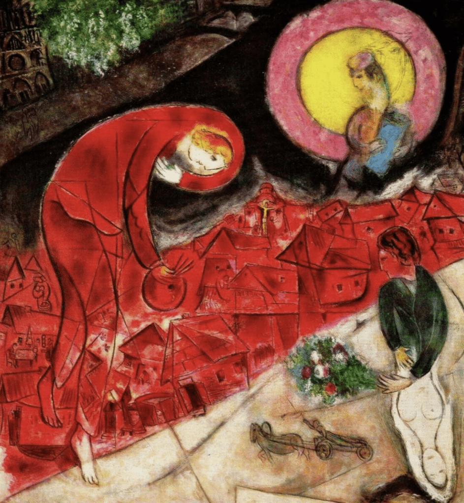 Painting: Red Roofs, Le toits rouges, by Marc Chagall, 1953 – 1954;