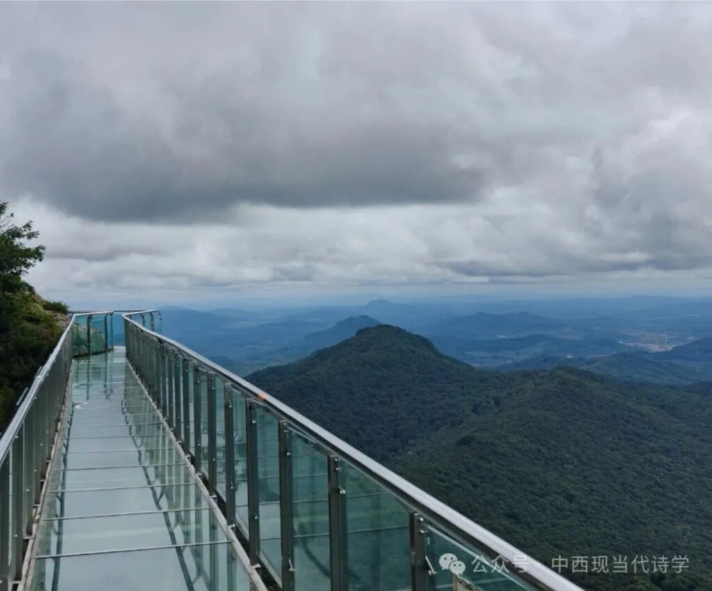 WhatsApp footage of Yongbo smiling at 800 metres above sea level as he walks across a glass bridge at Cap Mountain