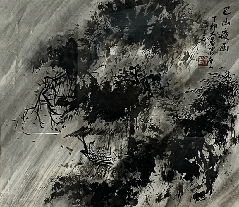 Painting by Fu Baoshi 傅抱石 Evening Rain in the Ba Mountains’.