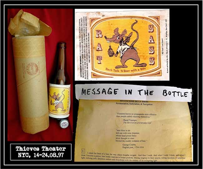 The Thieves Theater artists of Brooklyn, inspired by the early Beer Mystic adventures, which appeared in LOWEST COMMON DENOMINATOR, the WFMU program guide, proposed a