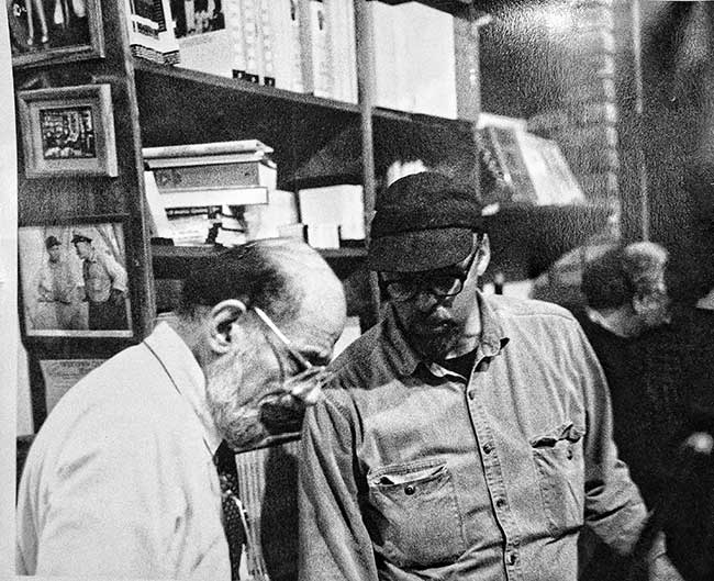 The man in the shot with Allen is Dennis Wills, owner of DG Wills Books