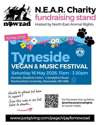 Mark your calendars for Saturday, 16 May 2026! We are thrilled to announce that Vijay Kritzinger will be representing Nowzad at the Domain, Northumbria University, from 11 am to 3.30 pm. She will be running the special charity fundraising stand hosted by our friends at North East Animal Rights (N.E.A.R.).