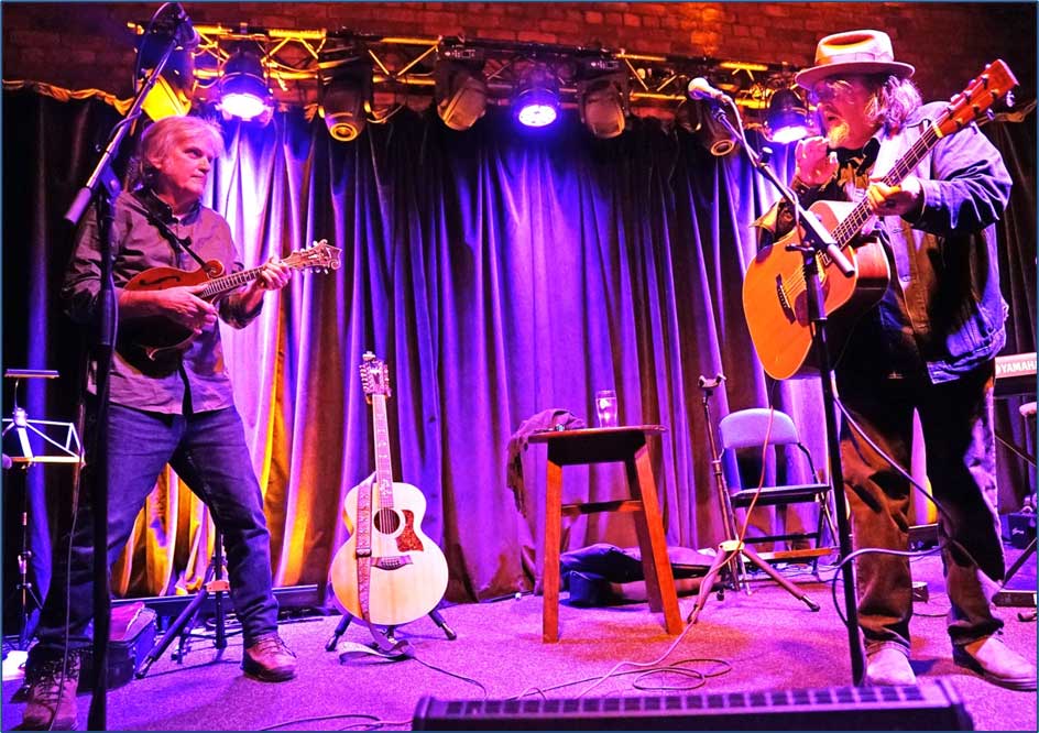 Some very fine songs from both guys, full of tall tales, mishaps, and as Sid suggested, “Original Sin!” Peter Case and Sid Griffin are well-regarded for their respective work in The Plimsouls/The Nerves and The Unclaimed/The Long Ryders. They also spent a lot of time sharing their thoughts on their own mortality, “Like you guys in the audience, we’re getting older”, and musings on the moralities of the USA. And Sid in particular still looks back over his shoulder for inspiration from Woody Guthrie (and his son, Arlo). The Coal Porters’ song ‘Mister Guthrie’ was one of Sid’s standout tracks. Sid is the guy without a fulsome beard!