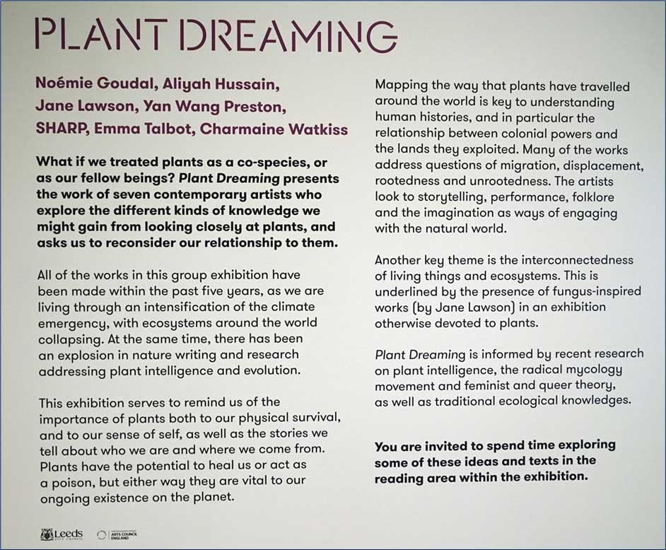 ‘Plant Dreaming’ and ‘Don’t Let’s Ask for the Moon…’ special exhibitions continue at the Leeds Art Gallery until 19th April 2026. Next door is the Henry Moore Institute which is interconnected internally.