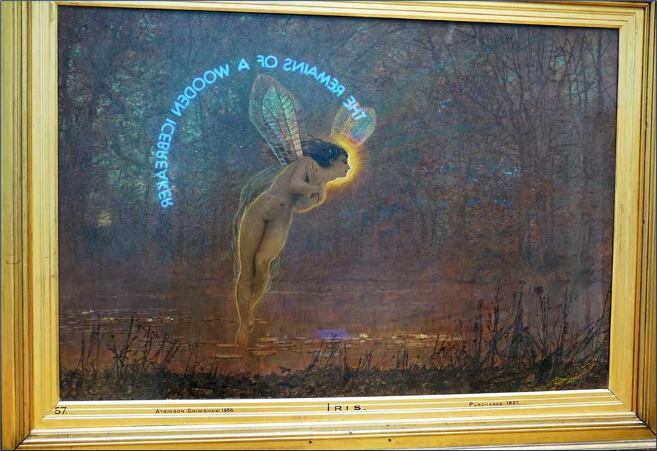 Also at the Leeds Art Gallery is: ‘Don’t Let’s Ask For the Moon…We Have the Stars’: Nocturnes and the works of Victorian artist, John Atkinson Grimshaw is a strange and enveloping set of exhibits. His famous fairy painting is still stunning and modern. In my photograph I used a reflection of another ‘neon’ exhibit to add another even more surreal layer.