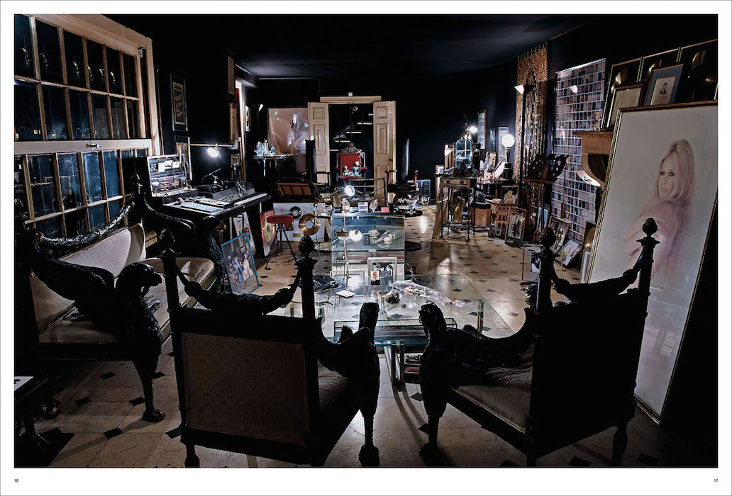 Charlotte invites me to open the black door to the right inside the main entrance and step onto the elegant porcelain tiles of the salon, which runs the entire length of the building. At the far end sits a Steinway baby grand piano, and a smaller upright piano. Closer to me is a portrait of the French icon Brigitte Bardot and a row of gold discs, awarded to Serge for millions of record sales. She confides that her father never taught her to play the piano because he described the experience of being taught by his father as, “torture.”