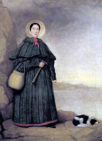 Illustration Mary Anning out fossil hunting with her loyal dog, Tray. (Image credit: Unknown Artist/National History Museum of London)