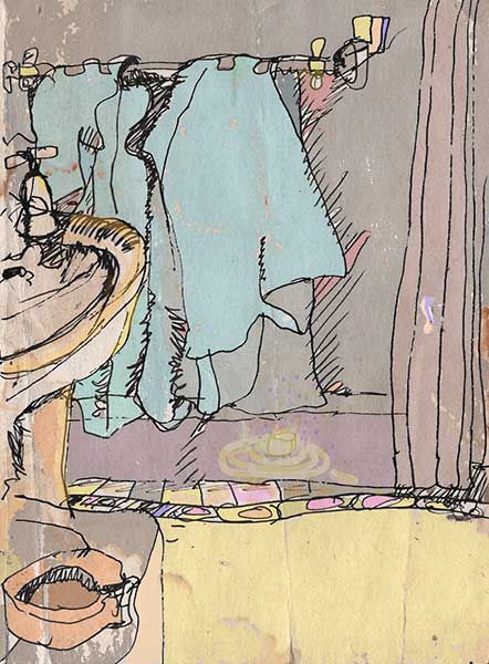 There’s a fallen ice cube melting at the door.