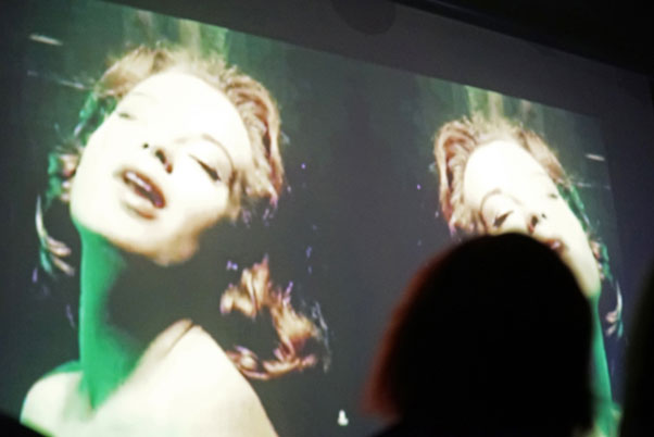 Alan: Andrew Liles joined The Utopia Strong on the current tour… His set involved an awesome wall of bass sounds and electronica, with a backdrop kaleidoscope of film images, splices from bleak new town housing schemes, surreal cut-ups of eyes, bodies, naked bodies – it reminded me of the experimental films created by Bunuel and Dali… It also created quite a dark tone for the whole ensemble show…
