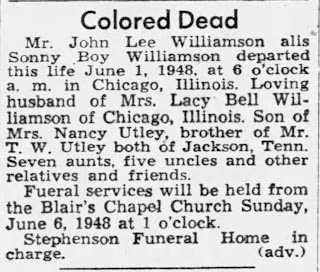 His death notice appeared in The Jackson Sun on Sunday, June 6, 1948. It was buried on page 15 among the classified ads under the heading “Colored Dead.” Three short paragraphs said nothing about his musical career.