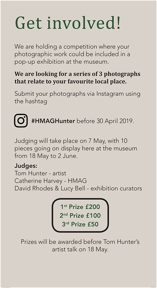 Tom Hunter is an artist who uses photography and film. He is Professor of Photography at the London College of Communications, University of the Arts London and his work has been exhibited nationally and internationally including National Gallery Washington (D.C. USA), National Gallery (UK), Photographers Gallery, Purdy Hicks and Serpentine Gallery (UK). Tom Hunter has published six books including: Le Crowbar (Here Press 2013), and The Way Home (Hatje Cantz 2015).